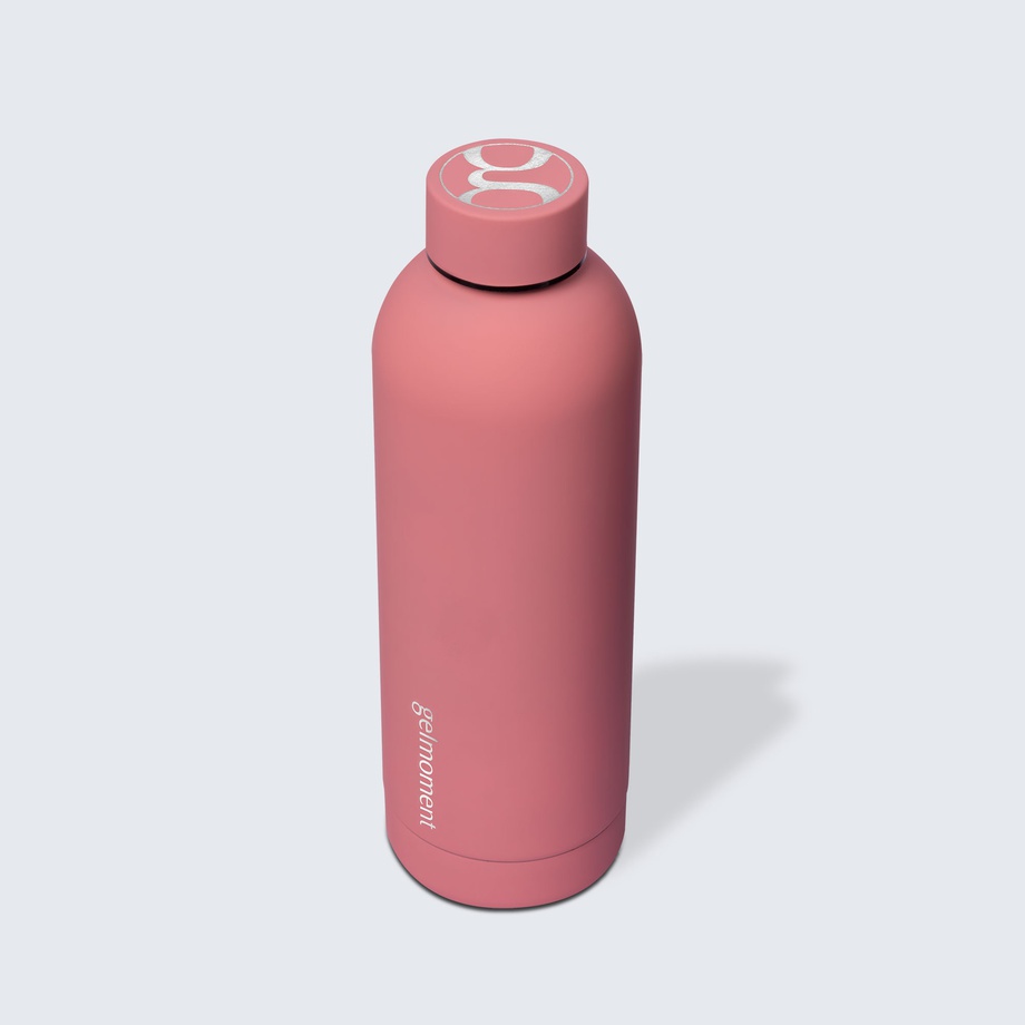 An additional plus of our water bottles is their distinct design. They’re available in two colours—matte pink & matte black—both tastefully branded with the gelmoment logo along the side & on the cap. The matte finish is super soft, and adds such a gorgeous, unique touch to this indispensable product.